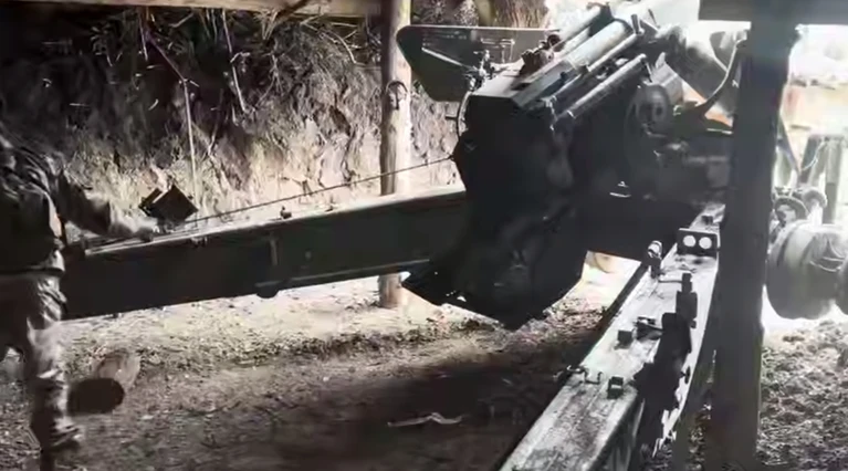 «Расчет 152-мм орудия "Гиацинт-Б" из 49-й армии отработал четко: три пристрелочных, четвертым — прямое попадание. Пункт управления БПЛА и ПВД с личным составом уничтожены», — сообщили в Минобороны РФ.